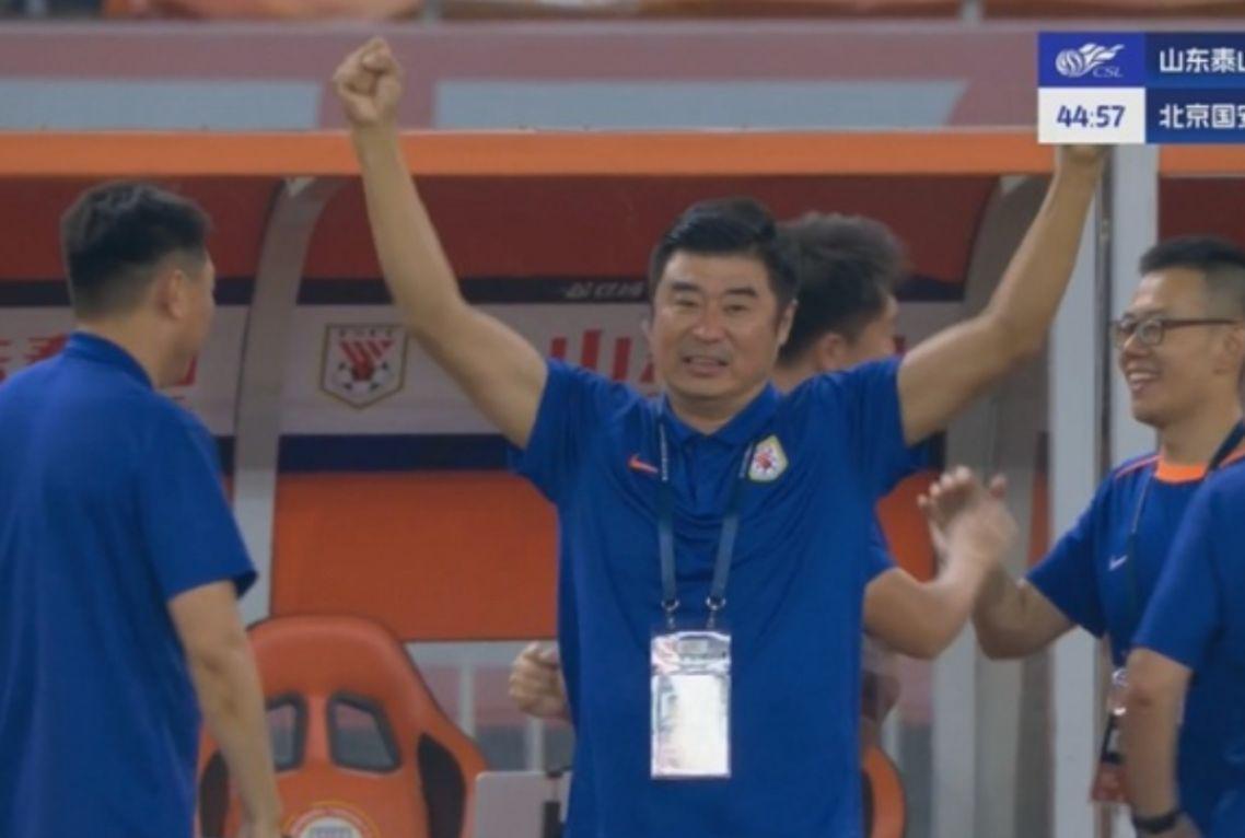 最终,泰山队主场6-0横扫国安,豪取4连胜,而国安的3连胜则遭到了终结。韩鹏高举双臂,庆祝胜利。